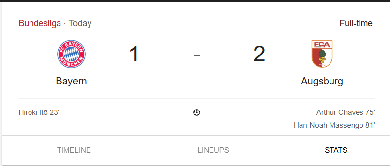 In the Augsburg vs Bayern clash tonight, Bayern Munich suffered their first Bundesliga defeat of the season as FC Augsburg came from behind to secure a stunning 2-1 away victory at the Allianz Arena. Despite the shock result, Bayern maintain their position at the top of the Bundesliga standings, though the chasing pack is now closing in.