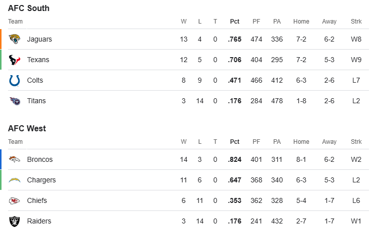 Around the AFC, heavyweights have emerged. Denver (14–3) and Jacksonville (13–4) stamped themselves as division leaders, while Houston (12–5) surged into the postseason as a rising force. Yet the field is anything but settled. Traditional powers like Kansas City stumbled, opening the door for teams like Buffalo to seize the moment.