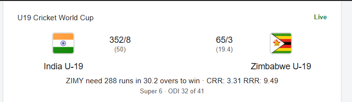With this emphatic win, India U19 strengthened their position in the Super Six stage of the ICC U19 World Cup, reinforcing their status as strong title contenders. For Zimbabwe U19, the match proved a harsh lesson against a well-drilled Indian side that excelled in every department.