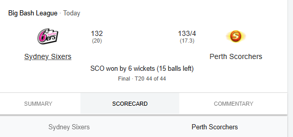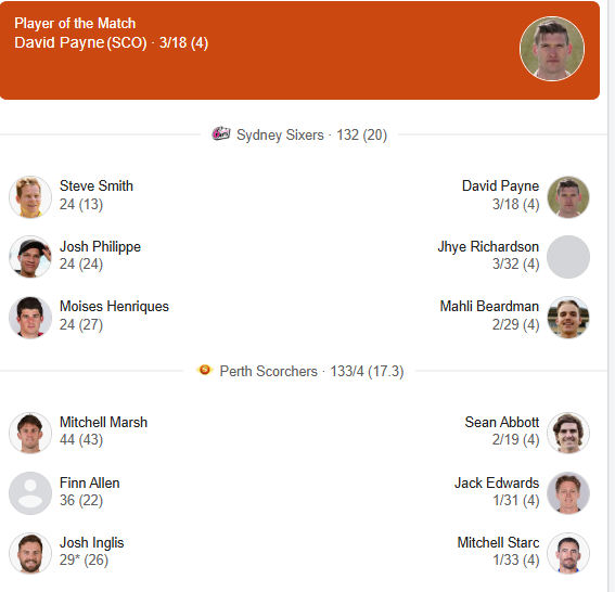 With this victory, Perth Scorchers strengthened their position in the tournament, while Sydney Sixers were left to reflect on missed opportunities with the bat in a match that slipped away early. Classic Scorchers efficiency, no drama, just business.